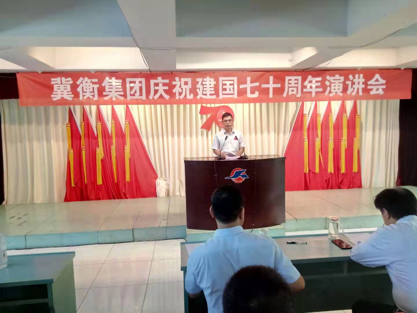 金風(fēng)送爽,禮贊連天涌;碩果飄香,大地鋪錦繡。為慶祝中華人民共和國(guó)成立70周年,宣傳貫徹“不忘初心、牢記使命”主題教育的理想信念,全面展現(xiàn)新時(shí)代冀衡人積極奮進(jìn)、奮發(fā)有為的精神風(fēng)貌,9月27日上午,冀衡集團(tuán)慶祝中華人民共和國(guó)成立70周年演講會(huì)成功舉辦。冀衡集團(tuán)黨委書記肖秋生、黨委副書記韓紅喜,各公司黨支部書記,以及黨員、職工代表100余人參加了本次演講會(huì)。